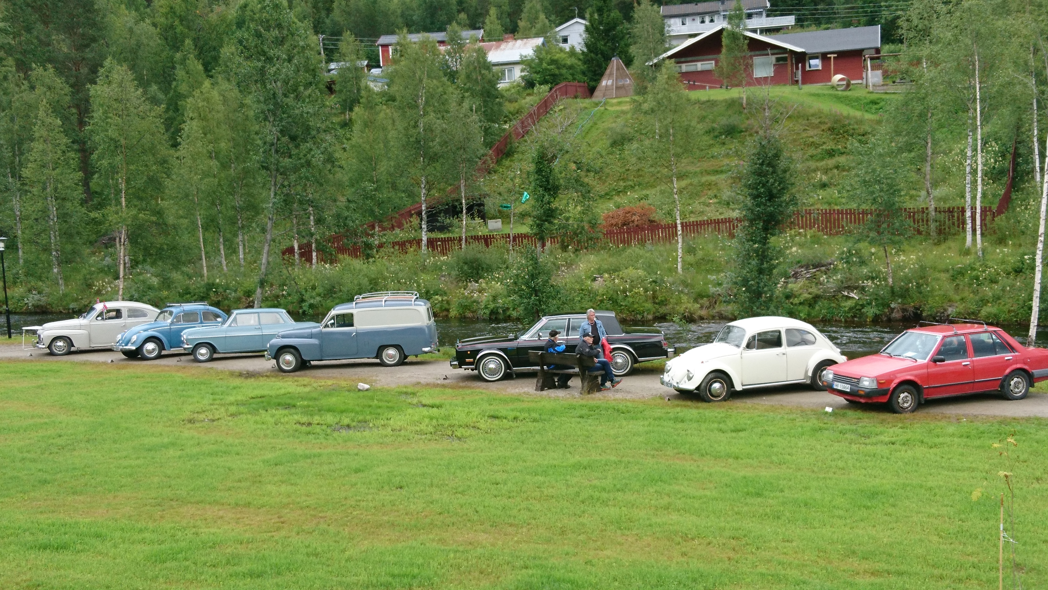 Bilder fra oppstilling ved Joker, Drevsjø før vi kjørte i kortesje ned til Engerdal og stilte oss opp i kirkeparken ned mot elva.